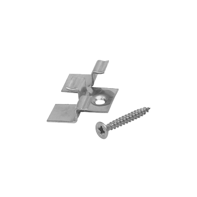 Клипсы служат для крепежа доски к лаге с зазором 2 мм между досками. Устанавливаются на каждом пересечении доски с лагой. Минимальный зазор необходим для вентиляции настила. Комплектуются универсальными нержавеющими шурупами 3х40.