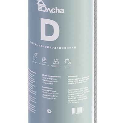 Паро-гидроизоляционная пленка Dacha D — это рулонный материал, предназначенный для утеплителя и несущих деревянных конструкций