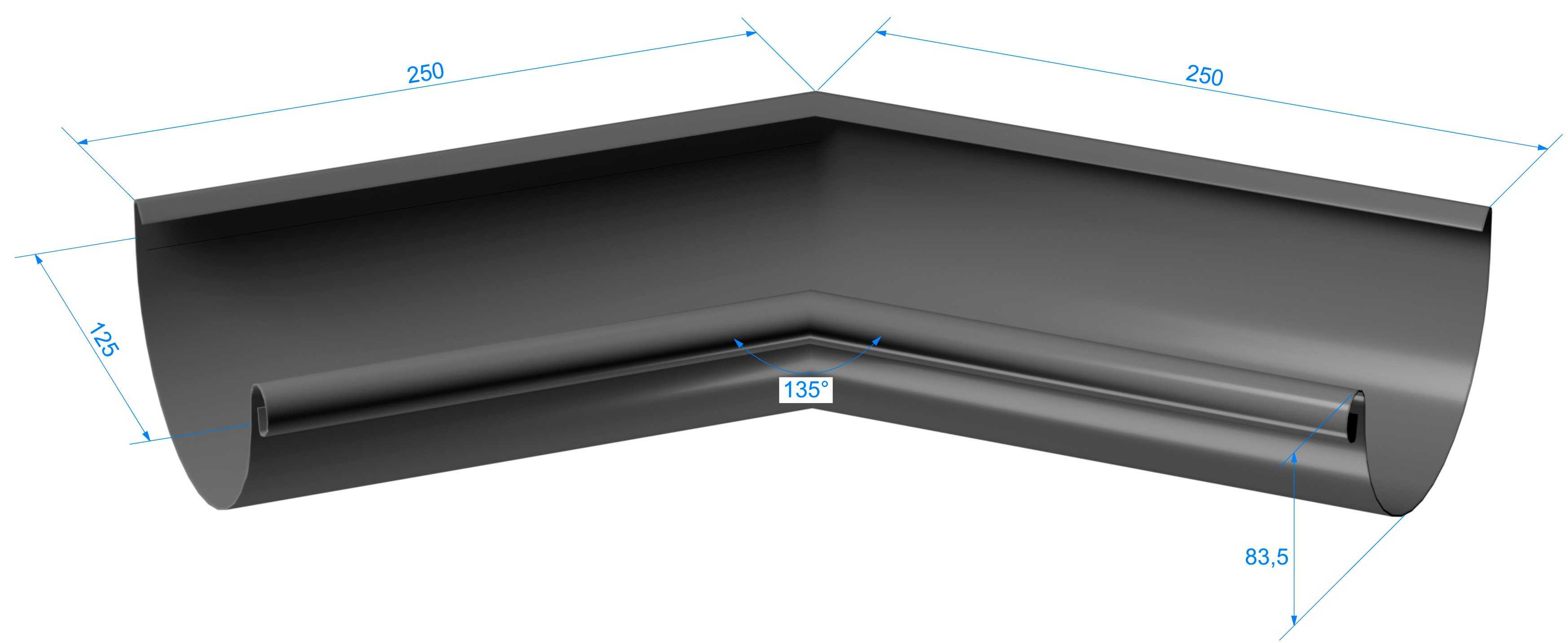 Чертеж внутреннего угла 135 (Водостоки STAL)